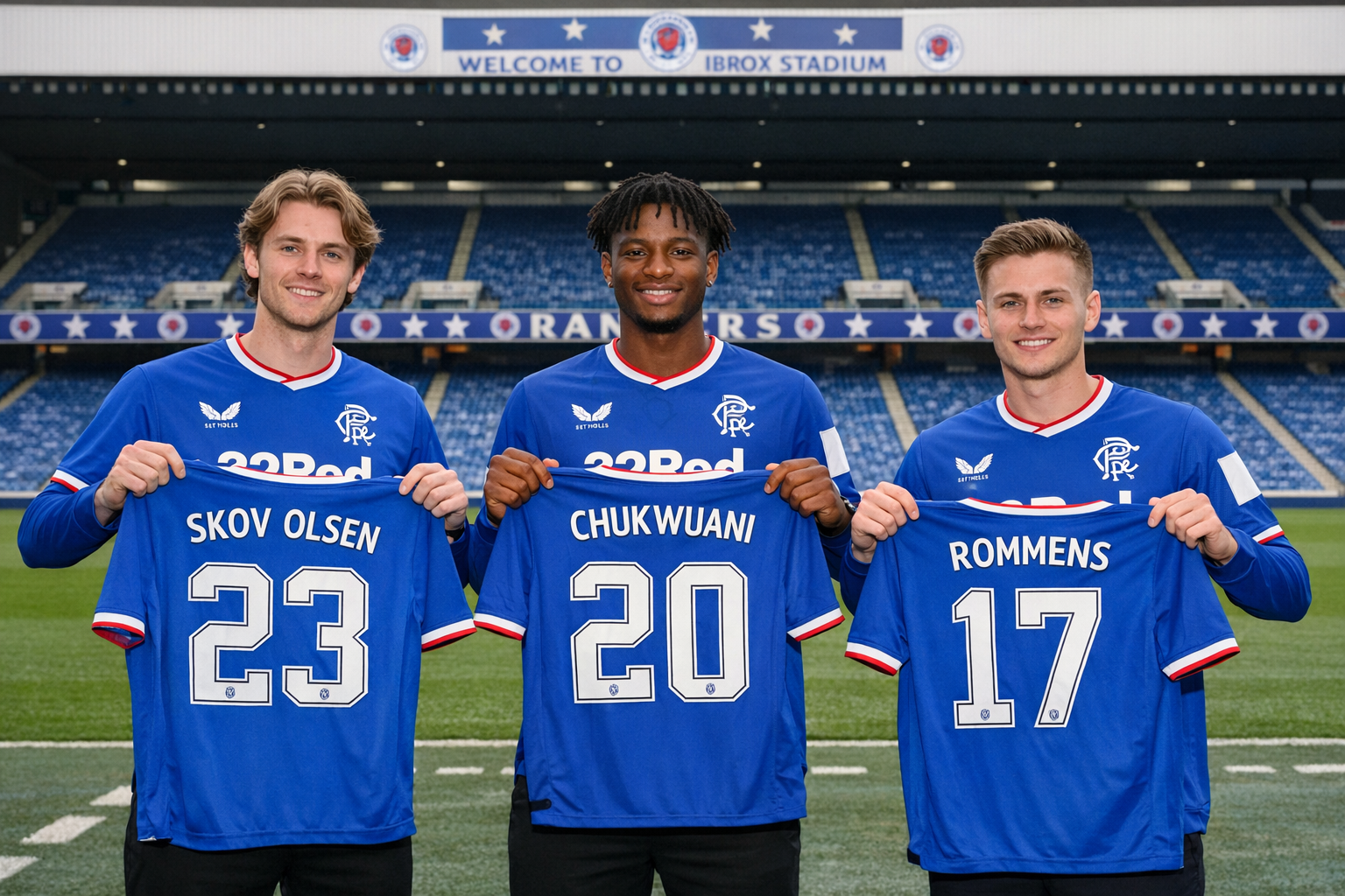 Rangers have officially unveiled three new January transfer signings as Andreas Skov Olsen, Tochi Chukwuani and Tuur Rommens were presented to supporters at Ibrox Stadium.