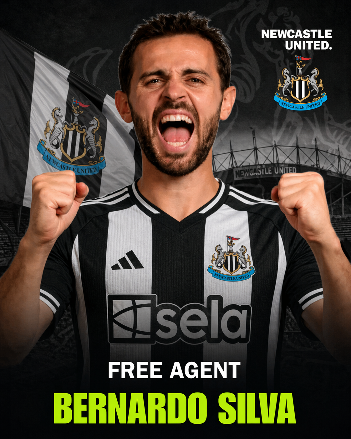 Bernardo Silva has reportedly become a free agent, sparking intense speculation about his next destination. The image circulating online shows the playmaker proudly donning the iconic black-and-white jersey of Newcastle United, igniting excitement among fans and pundits alike.