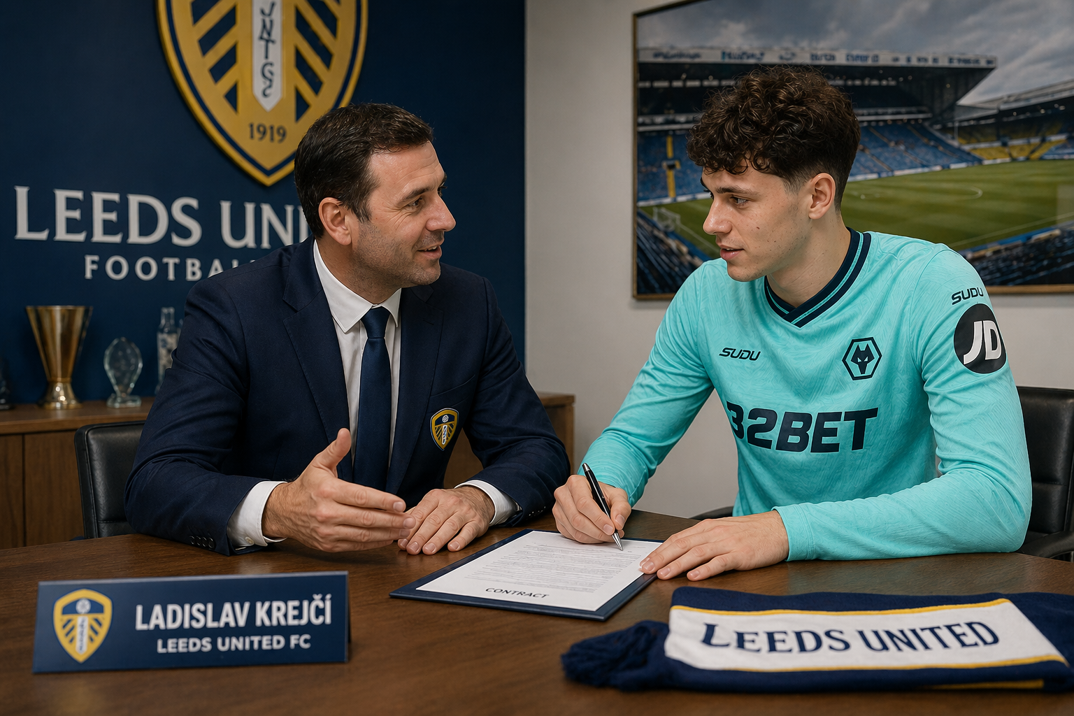 In a composed setting at the club’s offices, Krejčí was pictured finalising the agreement alongside a Leeds United official, marking the beginning of a new chapter in his career. The 25-year-old arrives with a growing reputation in European football, known for his versatility, composure on the ball, and leadership qualities.
