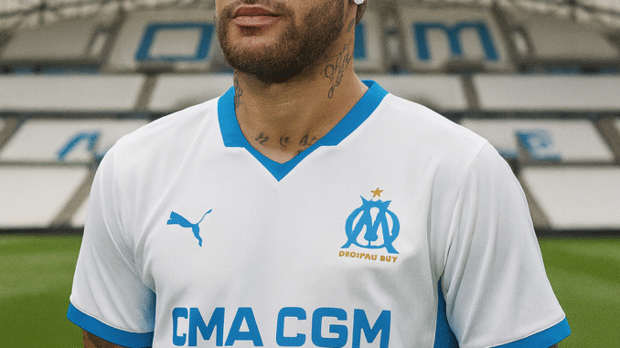 Neymar Jr a officiellement été dévoilé en tant que nouveau joueur pour l’Olympique de Marseille. Quelques heures seulement après avoir mis fin à son contrat avec Santos, la superstar brésilienne a été représentée fièrement debout à l’intérieur de l’emblématique Stade Vélodrome, portant un kit de maison classique et bleu Puma bleu de Marseille arborant le sponsor CMA CGM.